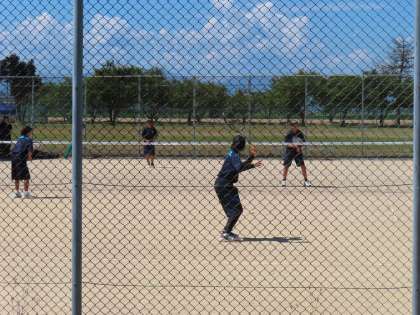 (写真中)女子ソフトテニス部・・・テントを2つ立てています。