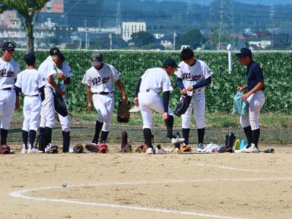 資源回収の後、学校のグラウンドに集まってきた軟式野球部員たち。 今日は、3年生の引退試合をやるそう。