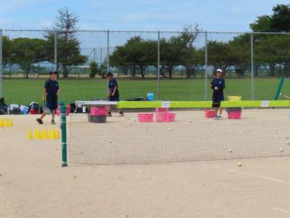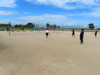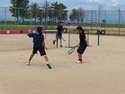 学校閉庁期間が終わり、早朝から女子ソフトテニス部が活動しています。