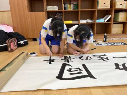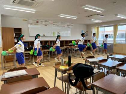 8月22日(火)「運動会団役員活動」その1 公開日 2023/08/22 更新日 2023/08/22 学校生活 団活動2日目 ダンスを決めている団や実際に踊ってみて確認いている団がありました。 よりよいパフォーマンスにするために、各団一生懸命活動しています! また、運動会のスローガンを書いている生徒もいます。 (写真上)スローガンを書いている様子 (写真中)黒潮団 (写真下)橄欖団