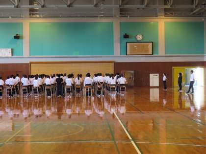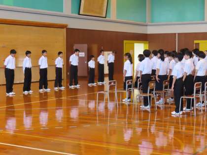 学年スタッフからの話のあと、1年生だけで「信条の朗読」を行いました。