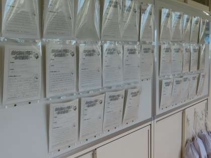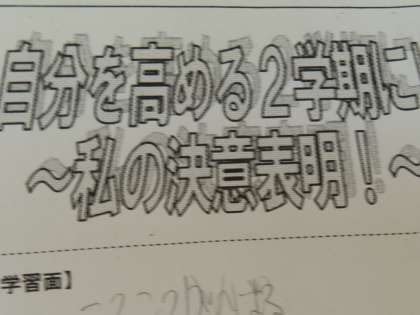 始業式の日に書いていたワークシートが廊下に掲示してありあます。