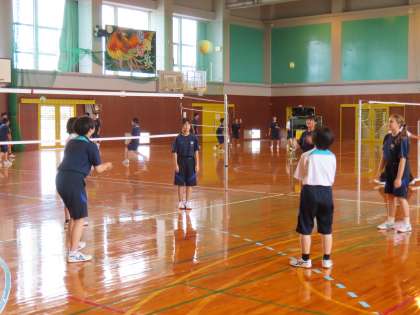 (写真下)3組保体「バレーボールのゲームをしよう」