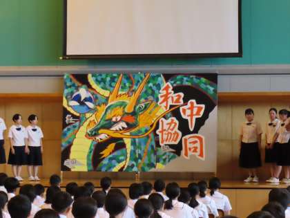 9月4日(月)運動会「デコレーション披露」 公開日 2023/09/04 更新日 2023/09/04 学校生活 全校生徒が集まる機会を利用して。、夏休みに3年のデコレーションリーダーが制作したパネルがお披露目されました。 「運動会をみんなで盛り上げましょう!」