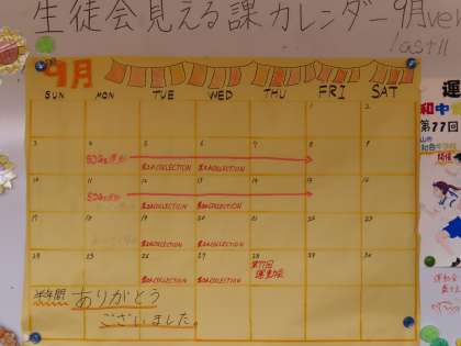 生徒玄関の生徒会ホワイトボードに今月の「見える化カレンダーが掲示されました。