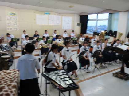 9月12日(火)「秋のミニ・コンサートに向けて」 公開日 2023/09/12 更新日 2023/09/12 部活動 ところで新人大会が終わった18日(月)敬老の日、吹奏楽部は「秋のミニ・コンサート」を開きます。 吹奏楽部もがんばっています。