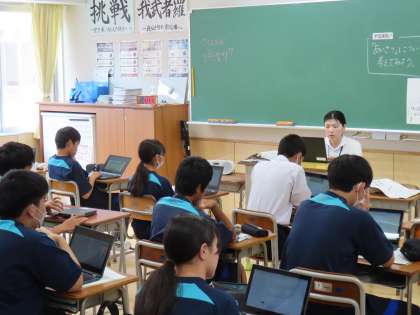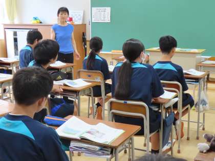 9月19日(火)2年生「授業の様子」 公開日 2023/09/19 更新日 2023/09/19 2年生 4時間目は道徳。 今日は、そのクラスの担任「じゃない」教員が行いました。 (写真上)1組「奇跡の一週間」 (写真中)2組「あいさつ」 (写真下)3組「歩調を合わせて」