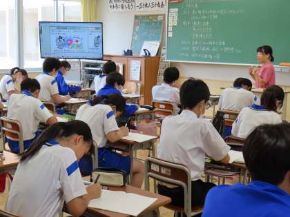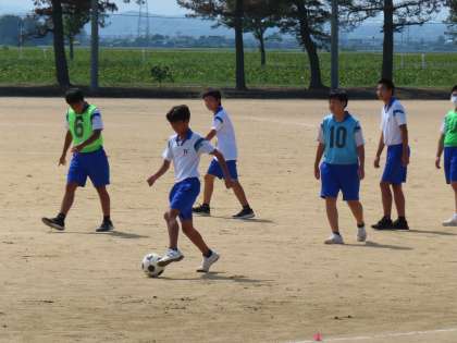 9月19日(火)3年生「授業の様子」その2 公開日 2023/09/19 更新日 2023/09/19 3年生 4時間目の様子です。 (写真上)1組社会「日本国憲法では平和主義をどのように定めているのだろう」 (写真中)2組保体「サッカー」 (写真下)3組数学「y=ax^2のグラフ」
