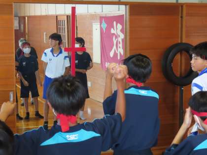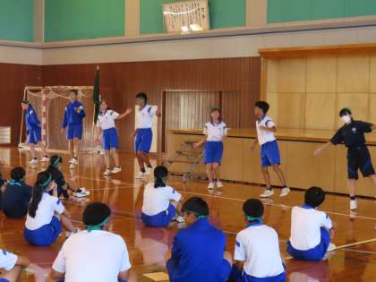 9月19日(火)「団別練習」 公開日 2023/09/19 更新日 2023/09/19 学校生活 結団式に続いて、6時間目は早速「団別練習」。 団のリーダーたちが夏休みから考えた演技を下級生たちに教えます。 (写真上)旭光団 (写真下)橄欖団