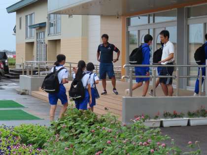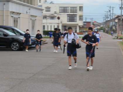 9月21日(木)「登校風景」 公開日 2023/09/21 更新日 2023/09/21 学校生活 おはようございます。 今日は曇り空。ぽつぽつと雨粒が落ちています。 体育服ではつらつと登校する生徒たちです。
