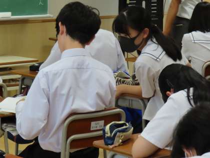 9月23日(土)3年生「授業の様子」 公開日 2023/09/23 更新日 2023/09/23 3年生 5時間目の公開授業の様子です。 (写真上)1組保体「気温が上昇すると私たちの体温はどうなるか」 (写真中)2組数学「y=ax^2のグラフをかこう」 (写真下)3組理科「浮力の大きさを測定しよう」