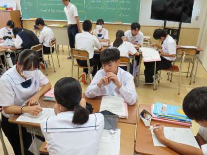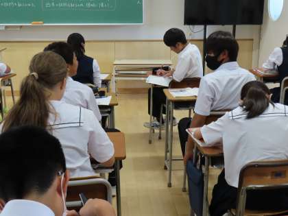 10月2日(月)2年生「授業の様子」 公開日 2023/10/02 更新日 2023/10/02 2年生 1時間目の様子です。 (写真上)1組英語「3つの大事なルールを伝えられなかったらどうするか考えよう」 (写真中)2組保体「サッカーをしよう」 (写真下)3組社会
