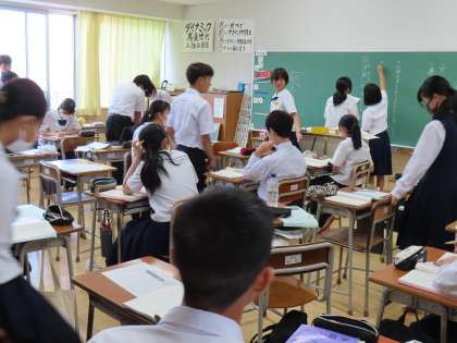 (写真中)2組国語「文章中の表現から作者の意図を考えよう」