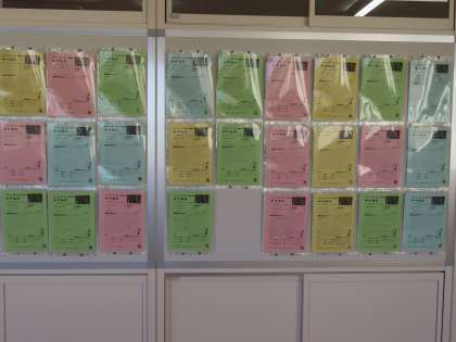 1年生の廊下には、感じたことや考えたことを書いたワークシートが掲示されました。