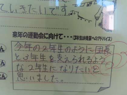 10月2日(月)1年生「運動会を終えて」