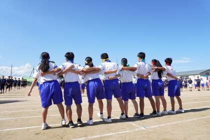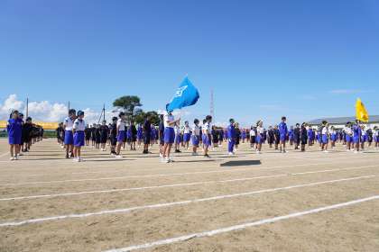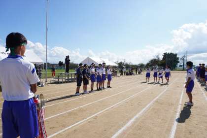 9月29日(金)「運動会」その28 公開日 2023/10/02 更新日 2023/10/02 学校生活 閉会式。全員で校歌を歌いました。最後に、全団員を代表して各団の団長が、運動会実行委員への感謝を伝えていました。