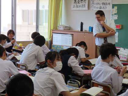 (写真中)2組英語「「先生知っていますか」クイズを作ろう」