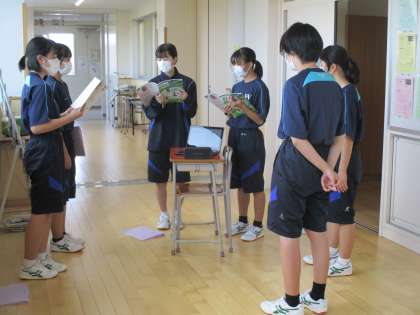 初めての合唱コンクールに向けての練習が始まりました。パート別に練習しています。