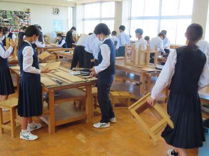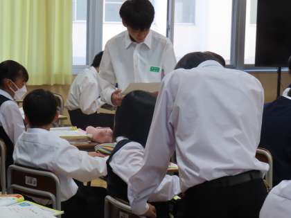 (写真下)3組英語「友達のポスターにコメントを書こう」
