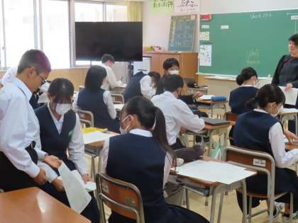 10月13日(金)1年生「授業の様子」 公開日 2023/10/13 更新日 2023/10/13 1年生 2時間目の様子です。 (写真上)1組英語「テストの見直し」 (写真下)3組家庭「服を買うとき」