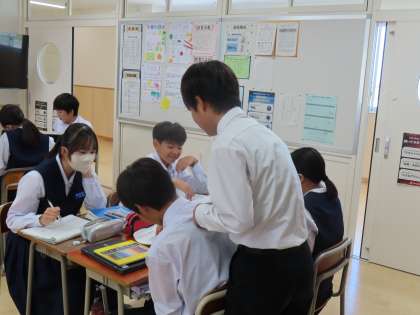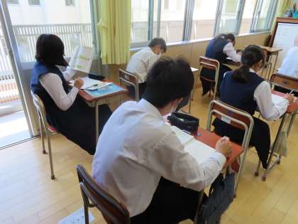 10月13日(金)2年生「授業の様子」 公開日 2023/10/13 更新日 2023/10/13 2年生 2時間目の様子です。 (写真上)1組美術「企画を決定しよう」 (写真中)2組数学「2直線に1つの直線が交わってできる角の性質を調べよう」 (写真下)3組英語「ウィルソン家の「家ルール」は何か読み取ろう」