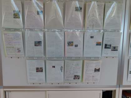 廊下に個人新聞が掲示されています。