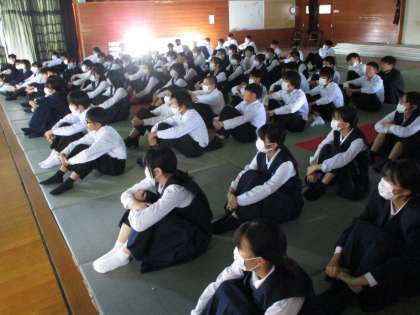 5限の学年集会では、テキスト学習の意義や進め方の説明を聞ききました。