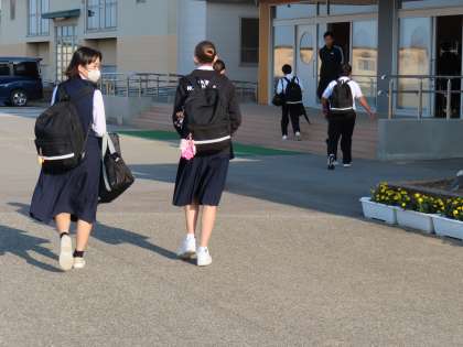 10月27日(金)「登校風景」 公開日 2023/10/27 更新日 2023/10/27 学校生活 おはようございます。 少し風のある晴れた朝になっています。 合唱コンクール前日です。 今日もよろしくお願いします。