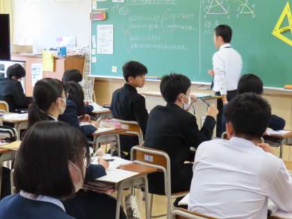 11月1日(水)3年生「授業の様子」 公開日 2023/11/01 更新日 2023/11/01 3年生 3時間目の様子です。 (写真上)1組数学「三角形の相似を見付けよう」 (写真中)2組音楽「歌のテスト」 (写真下)3組国語「文章の表現から情景を想像しよう」