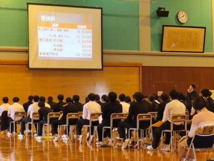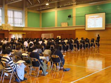 11月2日(木)3年生「進路説明会」 公開日 2023/11/02 更新日 2023/11/02 3年生 いよいよ3年生は、卒業後の進路を具体的に考える時期になりました。 今日は、保護者の方も参加いただいての説明会です。