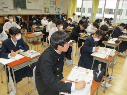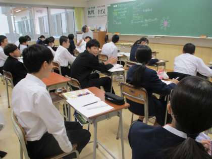 11月10日(金)2年生「授業の様子」 公開日 2023/11/10 更新日 2023/11/10 2年生 3限目の様子です。 (写真上)1組家庭科「持続可能な社会について」 (写真中)2組理科「刺激を受け取ってから反応するまでにかかる時間を調べよう」 (写真下)3組保健体育「出血があるときの応急手当」