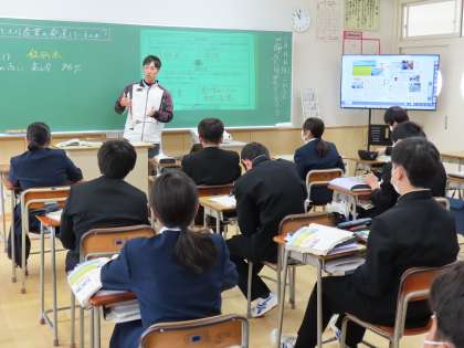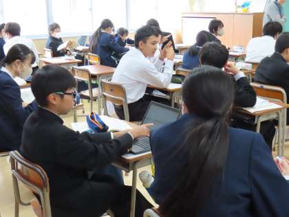 11月13日(月)2年生「授業の様子」 公開日 2023/11/13 更新日 2023/11/13 2年生 3時間目の様子です。 (写真上)1組国語「詩の特徴を確認しよう」 (写真中)2組社会「北陸はどんな産業が発達しているのか?」 (写真下)3組美術「紋について学ぼう」