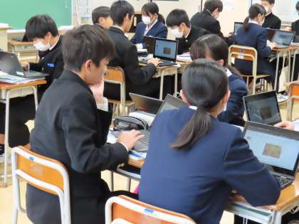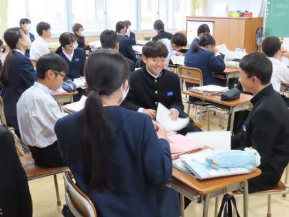 11月15日(水)2年生「授業の様子」 公開日 2023/11/15 更新日 2023/11/15 2年生 3時間目の授業です。 (写真上)1組英語「熱心なスタッフ」 (写真中)2組美術「漫画の変化を学ぼう」 (写真下)3組数学「三角形の合同条件を使った証明について考えよう」