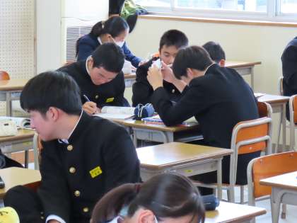 11月15日(水)3年生「授業の様子」 公開日 2023/11/15 更新日 2023/11/15 3年生 3時間目の様子です。 (写真上)1組数学「三角形の比の定理を理解しよう」 (写真中)3組理科「方位と時刻」 (写真下)2組自習
