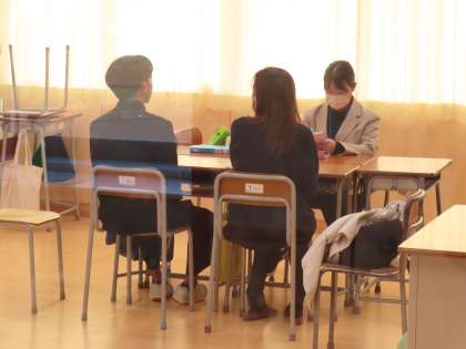 中学卒業後の進学・就職について3人で相談します。