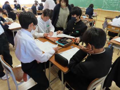 11月16日(木)1年生「授業の様子」 公開日 2023/11/16 更新日 2023/11/16 1年生 3時間目の様子です。 (写真上)1組数学「比例と反比例」 (写真中)2組理科「レンズをとおすと物体がどのように見えるか考えよう」 (写真下)3組国語「結論に説得力をもたせるためにどんな工夫が使えるか、自分の意見を書こう」
