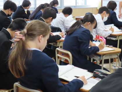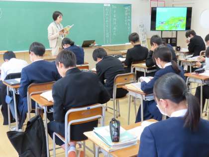 11月16日(木)2年生「授業の様子」 公開日 2023/11/16 更新日 2023/11/16 2年生 3時間目の授業です。 (写真上)1組技術「情報通信ネットワークのしくみ」 (写真中)2組国語「『扇の的』のあらすじを説明しよう」 (写真下)3組英語「スタッフがUD製品のことを熱心に伝えようとしているのはどこか探そう」
