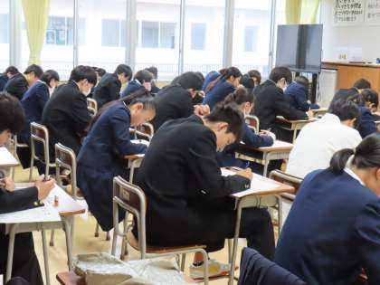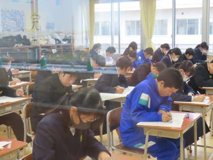11月24日(金)3年生「期末考査1日目」 公開日 2023/11/24 更新日 2023/11/24 3年生 社会のテストが始まりました。 今日は、社会、理科、音楽と続きます。 ※テストが始まったので廊下から撮影しています。
