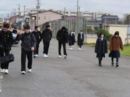 12月13日(水)「登校風景」 公開日 2023/12/13 更新日 2023/12/13 学校生活 おはようございます。 一面の雲の中、ちょっとだけ青空がのぞいています。 今日もよろしくお願いします。