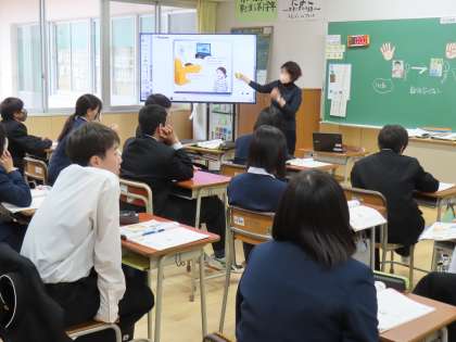 12月13日(水)1年生「授業の様子」 公開日 2023/12/13 更新日 2023/12/13 1年生 1時間目の様子です。 (写真上)1組英語「Unit8、スタート!」 (写真中)2組国語「筆順のきまりを覚えて、字を丁寧に書いてみよう」 (写真下)3組保体「バスケットボール」