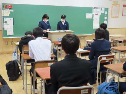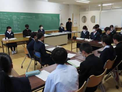 12/24( 水 ) 12月24日(水) 1学年 「受賞報告・意見発表の様子」