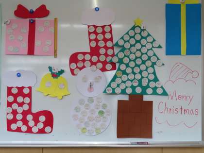 生徒の飾り付けもクリスマスらしくなっています。