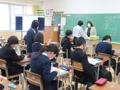 (写真中)2組数学「いろいろな角度を作図しよう」