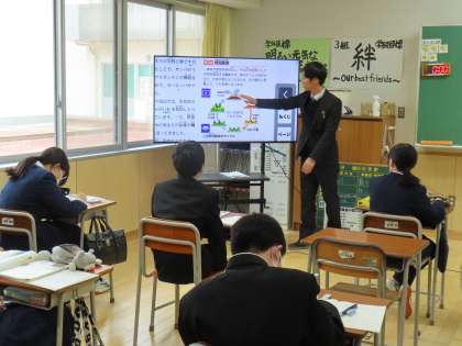 (写真下)3組社会「南アメリカ州の文化はどのようにして誕生したのか」