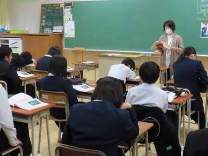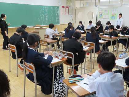 12月20日(水)1年生「授業の様子」 公開日 2023/12/20 更新日 2023/12/20 1年生 3時間目の1年生はローテーション道徳。 そのクラスの担任じゃない学年スタッフが授業をしています。 (写真上)1組資料名「銀色のシャープペンシル」2組担任 (写真中)2組資料名「席替え」3組担任 (写真下)3組資料名「思いやりの日々」学年主任