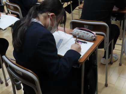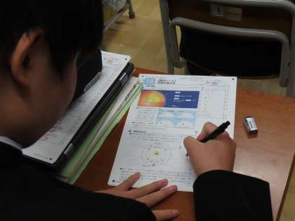 12月21日(木)3年生「2学期最後の教科の授業」 公開日 2023/12/21 更新日 2023/12/21 3年生 2学期最後の教科の授業は・・・ (写真上)1組理科「天体の見え方」 (写真中)2組保体「現代生活におけるスポーツの文化的意義」 (写真下)3組数学「円周角の定理の利用」