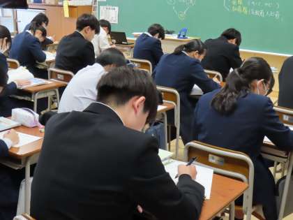 1月15日(月)3年生「授業の様子」 公開日 2024/01/15 更新日 2024/01/15 3年生 2時間目の様子です。 (写真上)1組理科「生産者・消費者・分解者」 (写真中)2組国語「万葉集の和歌に込められた情景や作者の思いを読み取ろう」 (写真下)3組保体「バスケットボール」