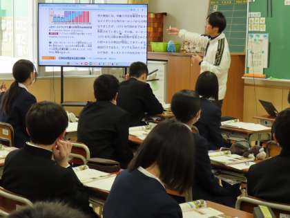 (写真上)1組社会「オセアニア州はどのようにして成り立っているのだろう」