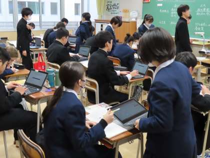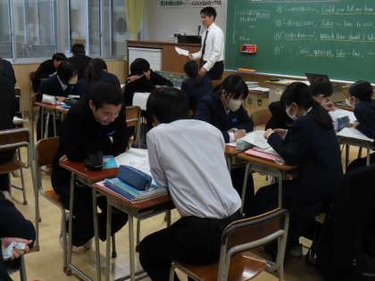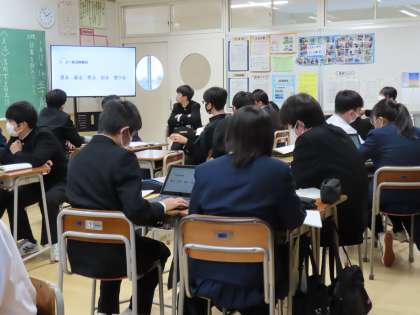 1月18日(木)2年生「授業の様子」 公開日 2024/01/18 更新日 2024/01/18 2年生 5時間目の様子です。 (写真上)1組英語「大阪の地下鉄で道案内できるようになろう」 (写真中)2組国語「活用形/活用の種類とは何か、説明できるようになろう」 (写真下)3組社会「東北地方の農業の特徴は?」
