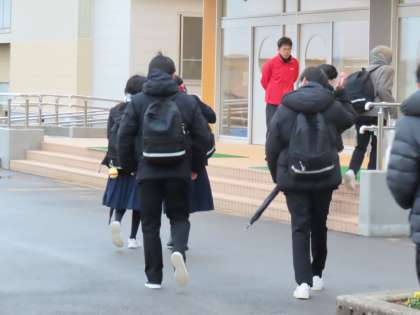 1月19日(金)「登校風景」 公開日 2024/01/19 更新日 2024/01/19 学校生活 おはようございます。 空には今日も雲が広がっています。 (おかげで冷え込みは少ないようです) 週末になります。 今日もよろしくお願いします。